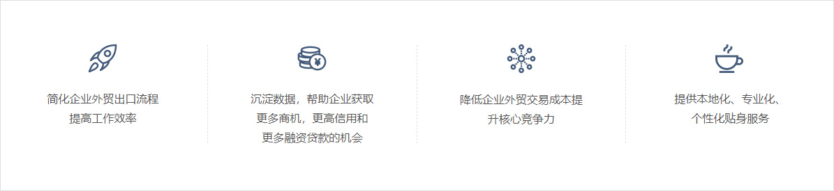 通過互聯(lián)網(wǎng)技術(shù)優(yōu)勢(shì)為外貿(mào)企業(yè)提供快捷、低成本的通關(guān)、收匯、退稅及配套的外貿(mào)融資、國際物流服務(wù),通過電子商務(wù)的手段,解決外貿(mào)企業(yè)流通環(huán)節(jié)的服務(wù)難題。