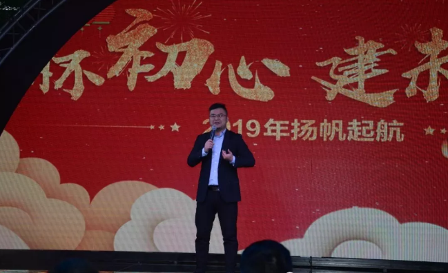 燈光四射,音樂響起,慶典開始,由錢洋、姜壘寶、耿家慧、賀琦鋒四位主持人登臺致開場詞:回顧2018,我們披荊斬棘,取得了不平凡的業績,展望2019,會是突破,創新、大豐收的一年,主持人激情蕩漾、振奮人心、感染全場。